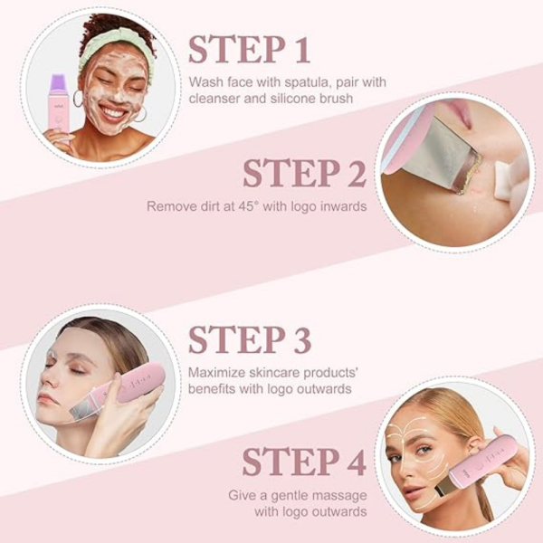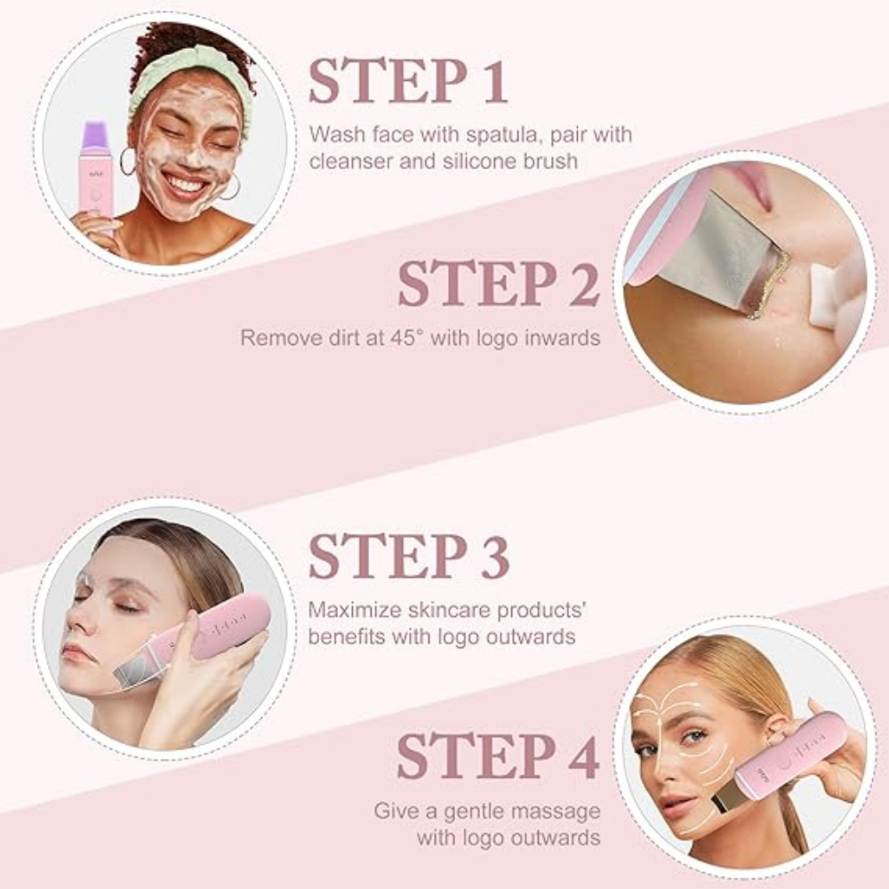 • භාවිතා කරන විට ස්පැටුලාව (Spatula) සම මත මෘදුව චලනය කරන්න.ultrasonic skin scraper